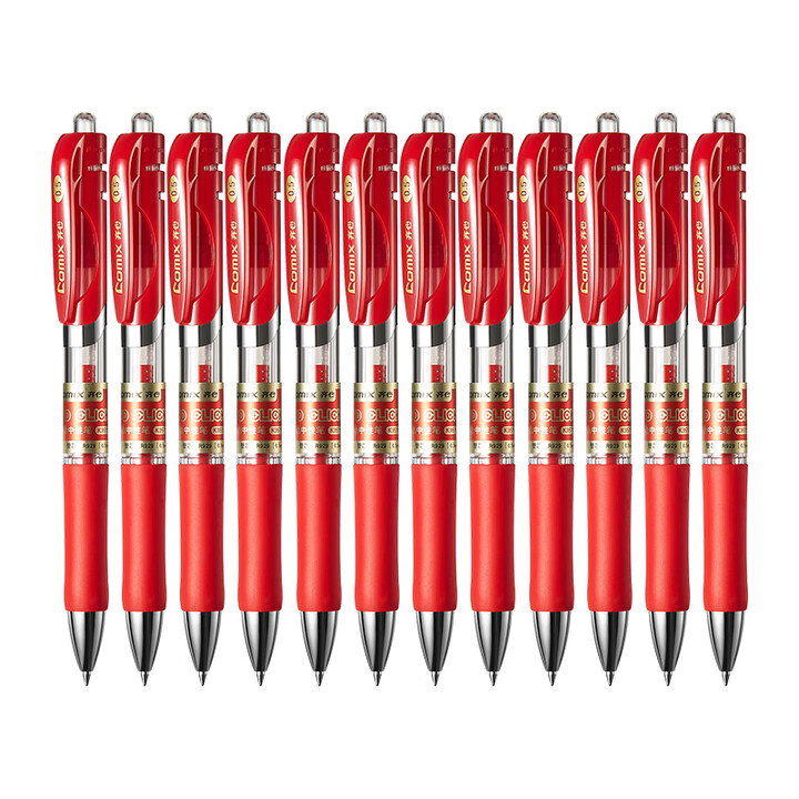 齐心(COMIX) 舒写顺滑按动中性笔/按压水笔/签字笔/0.5mm子弹头/红 12支/盒 K3511