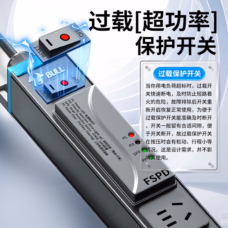 公牛(BULL) pdu插排桌搭排插公牛电竞插座电脑桌面防雷拖接插线板独立开关 【新款-数显-防过载-防雷】8插位
