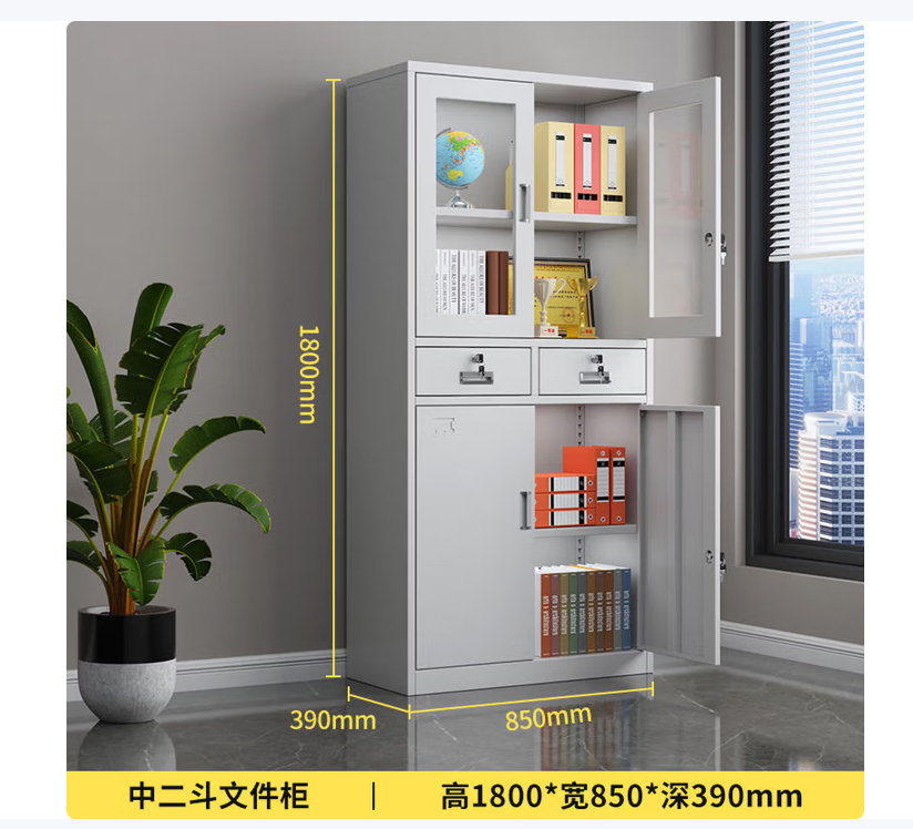振兴 资料柜带锁矮柜储物柜 中二斗柜(1.8m+0.85m+0.39m)